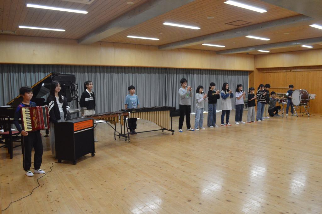 10月15日(水)、多目的ホールにて音楽集会を開催しました。今年度は児童会が中心となって進行を務め、低学年から高学年までが日頃の音楽の授業の成果を発表し合いました。