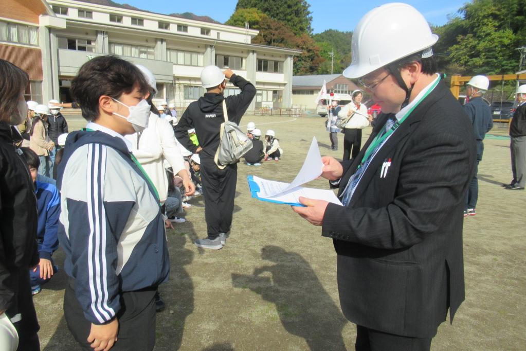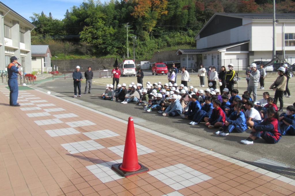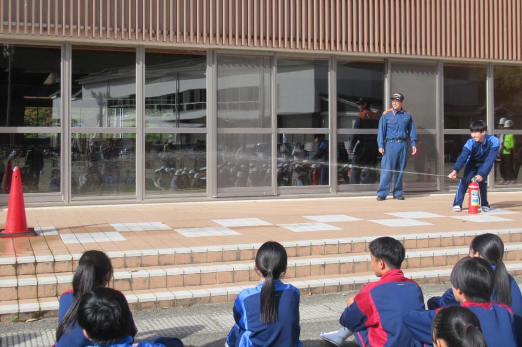 11月4日(火)、道志小学校と合同消防訓練を行いました。校内での火災を想定した避難訓練です。消火器を使った訓練も行いました。消防署員の方から、初期消火の3つの原則(早く知らせる、早く消火する、早く逃げる)を教わりました。