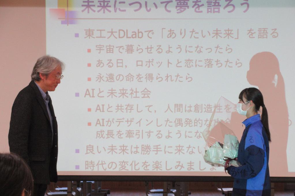 12月5日(金)、「未来の科学者訪問セミナー」を開催しました。本セミナーでは、第一線で活躍する科学者をお招きして、科学の魅力や研究の最前線について直接お話しいただきます。「未来を担う子供たちが、科学への関心を深め、学びの意欲を高める貴重な機会」として、県内各校で実施しています。今回、本校では、山梨大学大学院教授の安藤英俊先生をお招きし「AIと私たちの未来社会」と題して、お話をいただきました。AIが社会を変える時代に、未来を主体的に選び取る力の大切さを学ぶ機会となりました。ありがとうございました。