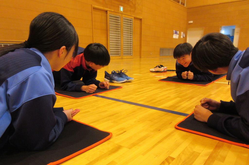 冬の体育館では、体幹トレーニングに励む姿、卓球に打ち込む軽快な音が響き、活気に満ちています。生徒たちはそれぞれの種目で技術を磨き、仲間と切磋琢磨しながら成長を重ねています。真剣な表情と明るい笑顔が交じり合うその時間は、冬ならではの温かさを感じさせてくれます。それでも、体育館はやはり寒いですね。