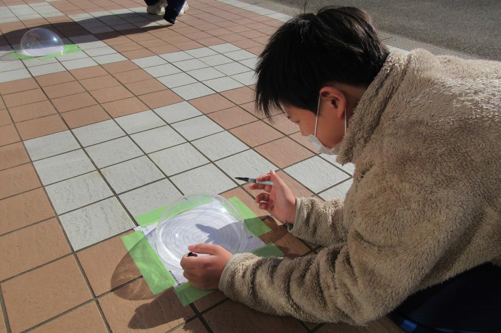 3年生の理科では、太陽の動きについて理解を深める学習として、校庭で「太陽の観察」を行いました。 今回は、太陽の高さや影の向きの変化を分かりやすく捉えるために、模型を使っての学習です。生徒たちは、太陽の位置が時間とともにどのように変化するのかを確かめています。
