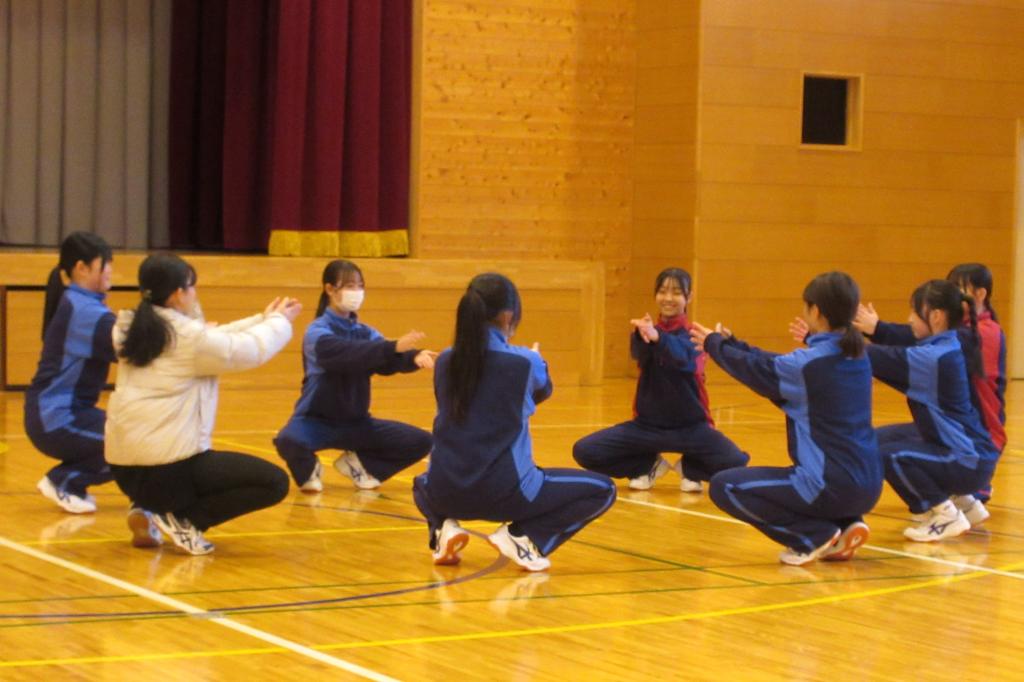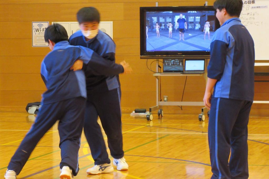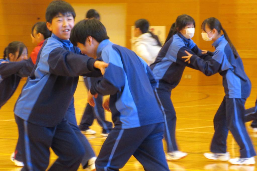 今日の保健体育の授業は、相撲の学習でした。生徒たちは基本技術の練習に取り組んでいます。姿勢や動きのポイントを確認しながら、すり足やしこふみ、立ち合いなどの動きを丁寧に練習する姿が見られました。体全体を使って技を磨こうとする真剣な表情がとても印象的です。