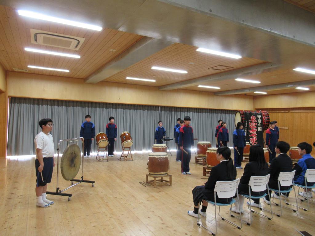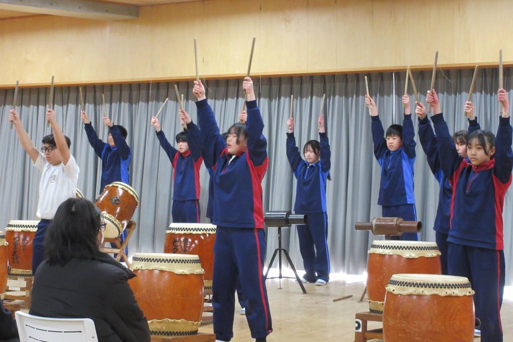 「三年生に贈る会」当日を迎えました。3年生への感謝や応援の気持ちがあふれ、温かな雰囲気に包まれました。太鼓の力強い演奏や気持ちをそろえた合唱等、どの場面からも子どもたちの真剣さと優しさが伝わってきました。3年生も、後輩たちの思いをしっかりと受け止めながら、笑顔で会を楽しんでいました。1・2年生にとっても、これまでの練習の成果を発揮し、3年生に感謝を届ける大切な時間となりました。多くの保護者の皆様にも参観いただきました。温かいご声援をありがとうございました。