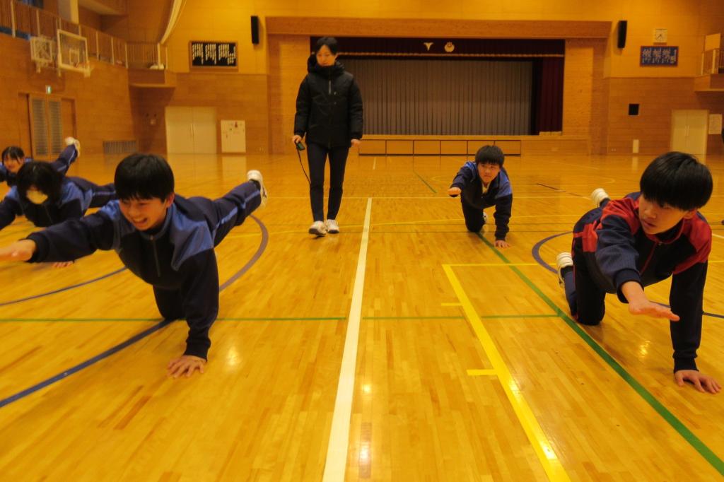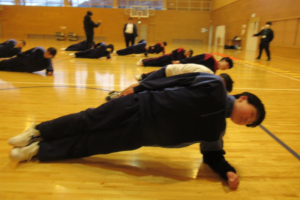 まだまだ冷え込みの厳しい時期ではありますが、互いに励まし合いながら、真剣にメニューに取り組んでいました。寒さに負けず、心身を鍛えようとする生徒たちの姿勢に、大きな成長を感じます。