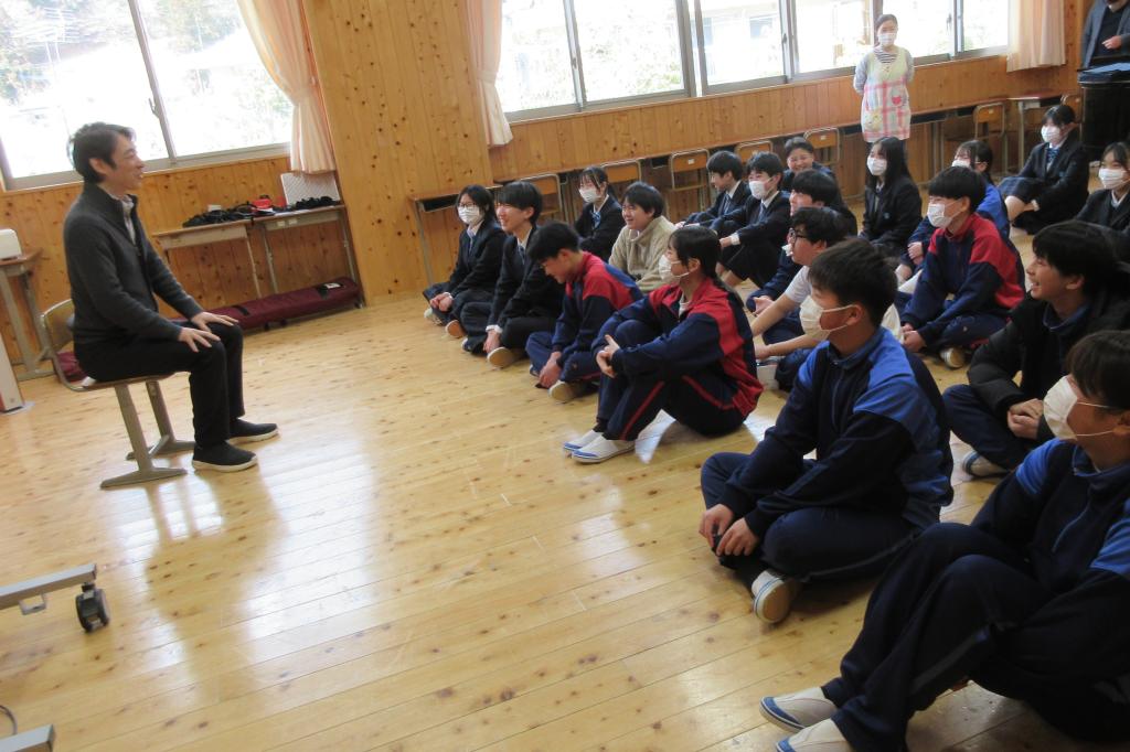 スクールカウンセラーの先生が、今年度最終日を迎え、全校生徒に向けて、お話をしてくださいました。 今年度も、生徒の相談対応や授業支援を通して、学校の安心づくりに力を尽くしてくださいました。集会では「自分の気持ちに気づくこと」「困ったときに相談すること」の大切さを、温かい言葉で伝えてくださいました。 生徒たちは真剣に耳を傾け、最後には大きな拍手が送られました。1年間のご支援に、心より感謝申し上げます。
