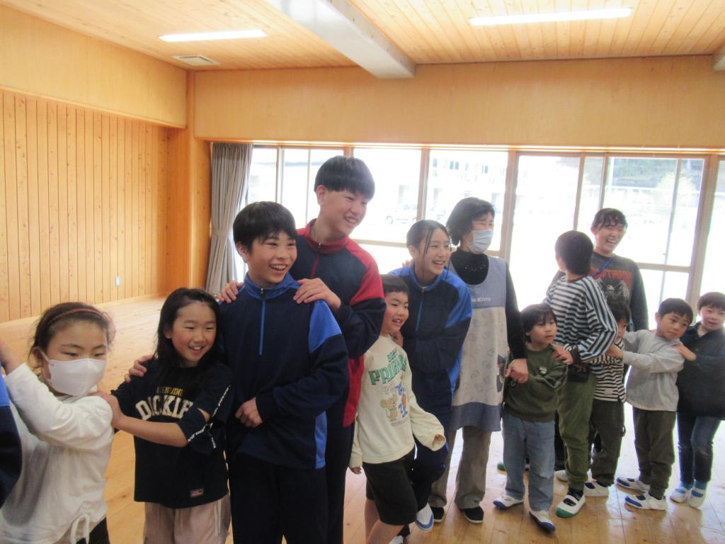 レクリエーション「じゃんけん列車」で、小学生と中学生が交流しました。